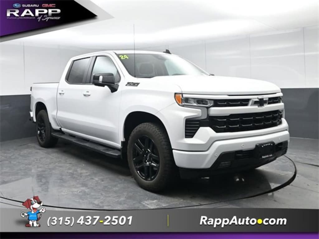 ONE OWNER, LOW MILES, CLEAN CARFAX, Non-Smoker, New Brakes, Recent Oil Change, Dealer Detailed, Dealer Inspected, Backup Camera, Bluetooth, Hands-free, Power Locks, Power Windows, Trailer Hitch, AWD / 4WD, View our entire inventory at https://www.billrappbuickgmc.com/, Heated Steerin Wheel, Silverado 1500 RST, 4D Crew Cab, EcoTec3 5.3L V8, 10-Speed Automatic, 4WD, Black Cloth, 10-Way Power Driver Seat w/Lumbar, 12.3 Multicolor Reconfigurable Digital Display, 120-Volt Interior Power Outlet, 6-Speaker Audio System, All-Star Edition, Auto High-beam Headlights, Auto-Locking Rear Differential, Black Name Plates (LPO), Bluetooth® For Phone, Color-Keyed Carpeting Floor Covering, Convenience Package, Convenience Package II, Dark Essentials Package (LPO), Deep-Tinted Glass, Dual Exhaust w/Polished Outlets, Dual Rear USB Ports (Charge Only), Dual-Zone Automatic Climate Control, Electric Rear-Window Defogger, Electrical Steering Column Lock, Electronic Cruise Control, EZ Lift Power Lock & Release Tailgate, Front fog lights, Front Frame-Mounted Black Recovery Hooks, Front LED Fog Lamps, Front Rubberized Vinyl Floor Mats, Fully automatic headlights, HD Rear Vision Camera, HD Surround Vision, Heated Driver & Front Outboard Passenger Seats, Heated Power-Adjustable Outside Mirrors, Heated Steering Wheel, Heavy-Duty Air Filter, High Capacity Suspension Package, High Gloss Black Mirror Caps, Hill Descent Control, Hitch Guidance w/Hitch View, In-Vehicle Trailering System App, Inside Rear-View Mirror w/Tilt, Integrated Trailer Brake Controller, Keyless Open & Start, LED Cargo Area Lighting, Off-Road Suspension, OnStar & Chevrolet Connected Services Capable, Perimeter Lighting, Power driver seat, Power Front Windows w/Driver Express Up/Down, Power Front Windows w/Passenger Express Down, Power Rear Windows w/Express Down, Power Sliding Rear Window w/Rear Defogger, Preferred Equipment Group 1SP, Premium Bose 7-Speaker Sound System, Rear 60/40 Folding Bench Seat (Folds Up), Rear Cross Traffic Braking, Rear Pedestrian Alert, Rear Rubberized-Vinyl Floor Mats, Remote Engine Starter, Safety Package, SiriusXM w/360L, Standard Suspension Package, Standard Tailgate, Steering Wheel Audio Controls, Theft Deterrent System (Unauthorized Entry), Trailer Camera Provisions, Trailer Side Blind Zone Alert, Trailering Package, Ultrasonic Front & Rear Park Assist, Universal Home Remote, Wheels: 20 x 9 High Gloss Black Painted Alum, Wrapped Steering Wheel, Z71 Off-Road Package. Summit White 2024 Chevrolet Silverado 1500 RST 4WD 10-Speed Automatic EcoTec3 5.3L V8